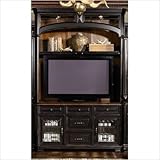 LNP10120 / LNP10119 Vernon gives a royal feel to any home, no matter if it's in the city or at the ranch. Strong, defined details with well-matured finishes emit the presence of power, an executive trait. Masterly details in hardware and glass panels show a love of craft you relate to in your own profession Features: -Entertainment armoire. -Vernon collection. -Distressed Black finish. -Antiqued look. -Five drawers with full extension ball bearing glides. -English dovetail joinery on all drawers. -Adjustable shelves. -Flip front gamer drawer easily stores video game consoles and their controllers. -Gamer drawer has HD connection for gaming devices. -Leaded glass doors. -Pecan undertones and accents. -Armoire top has three level touch lighting. -Manufacturer provides ten year limited warranty. -Component area dimensions: 20'' H x 20'' W x 21'' D. -Television area dimensions: 47'' H x 59'' W.